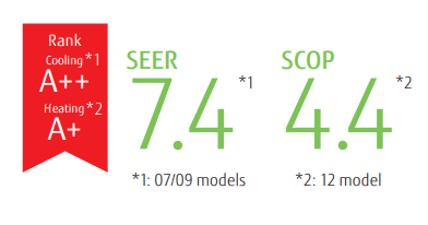 - Високи нива на ефeктивност – SEER 7.30 W/W A++, SCOP 4.40 W/W A+